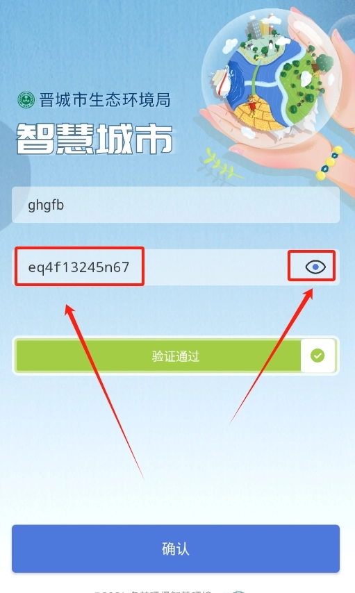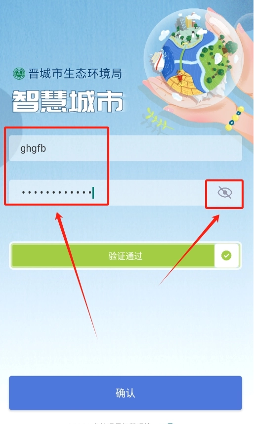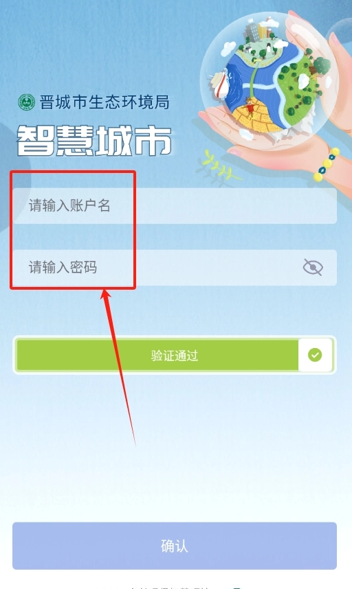 打开智慧环境决策软件后,在登录界面的指定位置,正确填写个人的账号与密码。