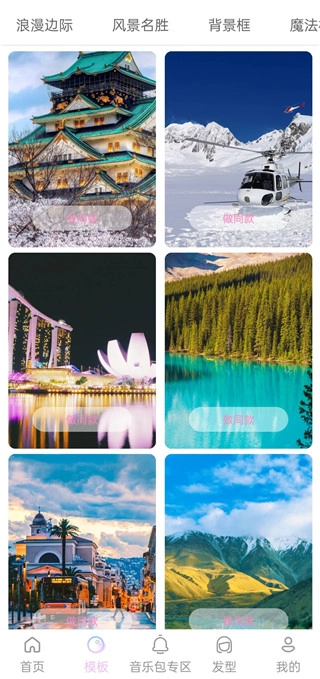 繁华都市、浪漫街头、异域海滩……借助画框模板丰富照片背景,就连单调的自拍也能变得极具个性。