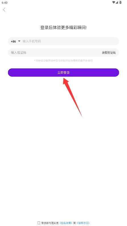 2、在登录界面,输入手机号和密码,勾选同意相关条款后点击立即登录按钮完成验证。