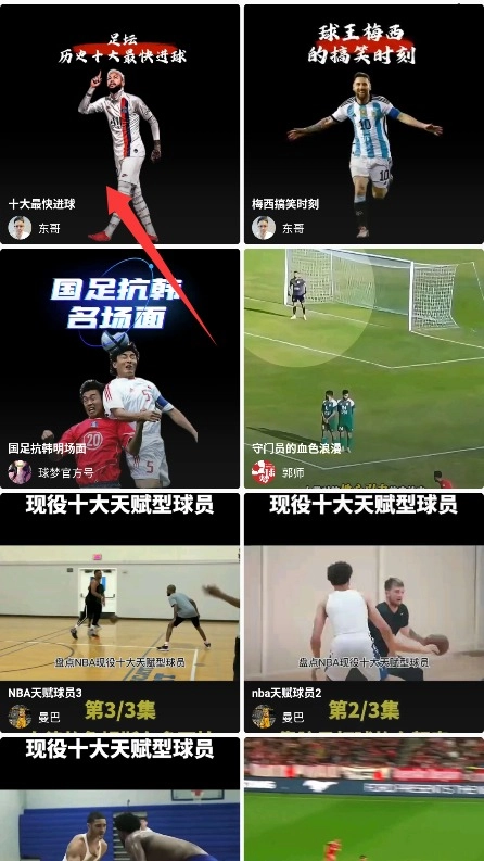 3、进入应用首页,点击导航栏中的视频集锦功能入口,即可浏览各类体育赛事精彩视频。