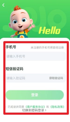 1、打开之后,首先进入的是登录界面,输入手机号与验证码即可完成注册与登录操作。