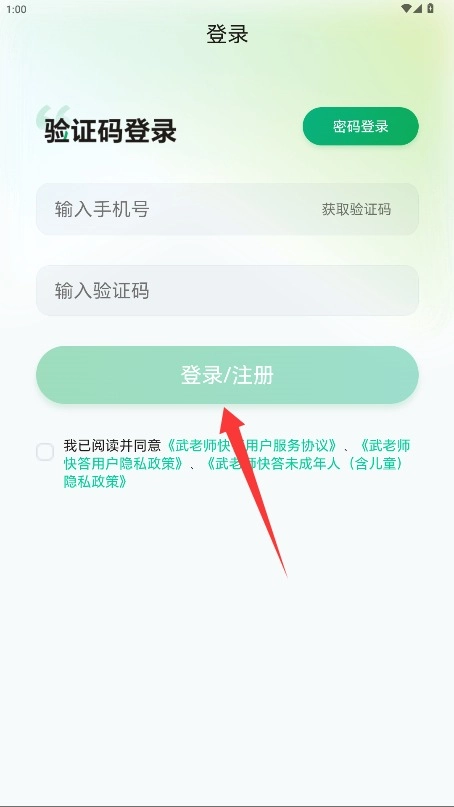 1、在登录页面输入手机号和验证码,勾选同意平台相关协议后点击登录、注册进入应用。