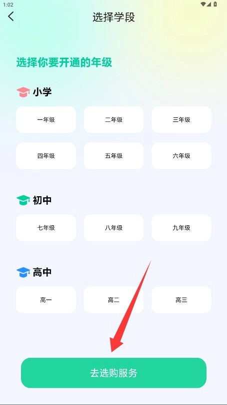 3、根据学生当前学习阶段选择对应年级,进入课程套餐浏览页面查看详情。