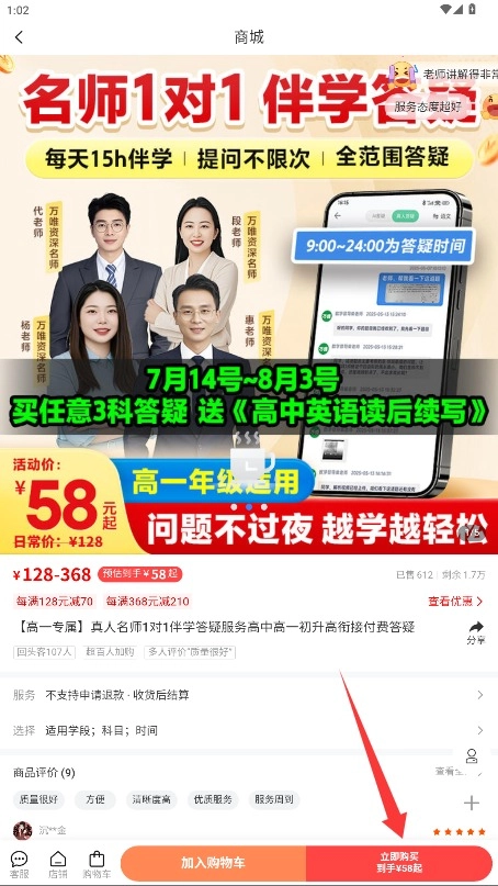 4、选定适合的辅导方案后,点击立即购买按钮完成支付即可立即开始在线学习。