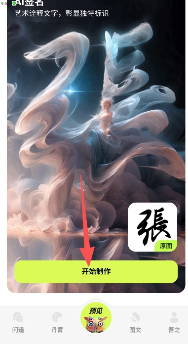 在预见页面找到“AI签名”选项,点击“开始制作”按钮,即可进入后续操作环节。