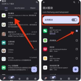 Lsposed的模块全部都是APK格式的,安装好模块后,桌面就会显示此模块的软件,然后我们进入lspatch里勾选模块的作用域后,重启Lsposed,就可以使用模块了。