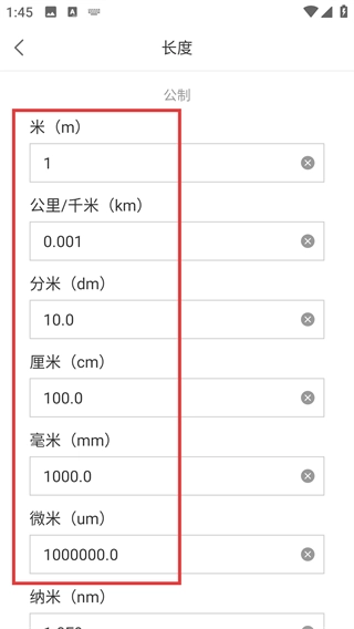 输入数值后,系统会自动显示其他长度单位的对应换算值,从而完成长度单位的换算流程。