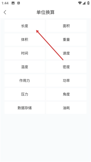 在单位换算分类页面点击【长度】选项,即可进入长度单位换算页面。