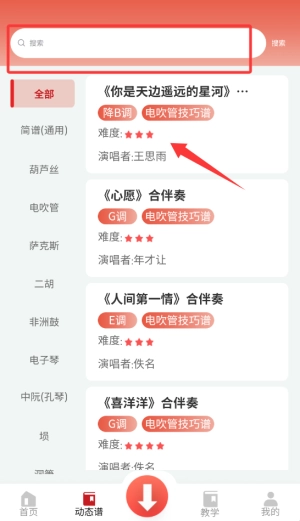 您可以在搜索框中输入歌曲名称或音乐家姓名,以此来查找您想要的曲谱内容。