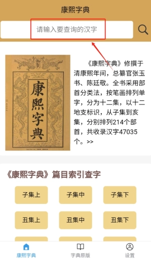 康熙中文字典实用性很强,能为用户提供便捷的古汉字检索服务,包含字形结构、读音解析以及字义详解等功能板块,支持借助偏旁部首或笔画数等多种检索方式来快速找到目标文字,这个应用完整收录了康熙字典的原始内容,还附加了现代注解说明。