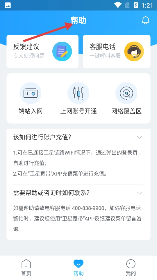 帮助页面着重展示反馈建议渠道与客服联系电话,针对账户充值、咨询协助等问题提供详细解答,为用户带来贴心的售后支持服务。