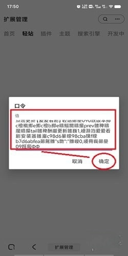 4、将轻站口令贴进去,点击“确定”。