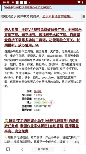 4、接着找到英文GreasyFork并点击进入。