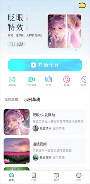 2、特效类型丰富多样:涵盖眨眼、水流、衣裙摇摆等多种图文特效,从多个维度增强作品的表现力。