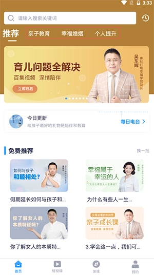 在本站完成安装后,软件即可在手机桌面运行,届时您会看到亲子教育、幸福婚姻、个人提升这三大核心模块。