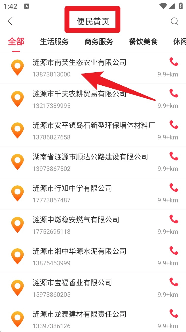 2. 点击便民黄页可查看本地商家联系方式,支持电话联系或就近浏览服务商。