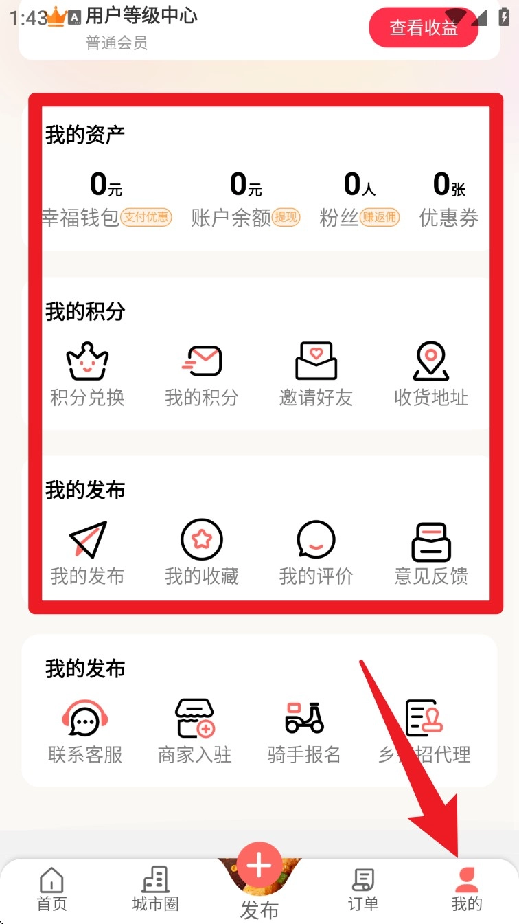 5. 在我的页面可管理账户资产、积分、订单收藏以及发布记录等个人信息。