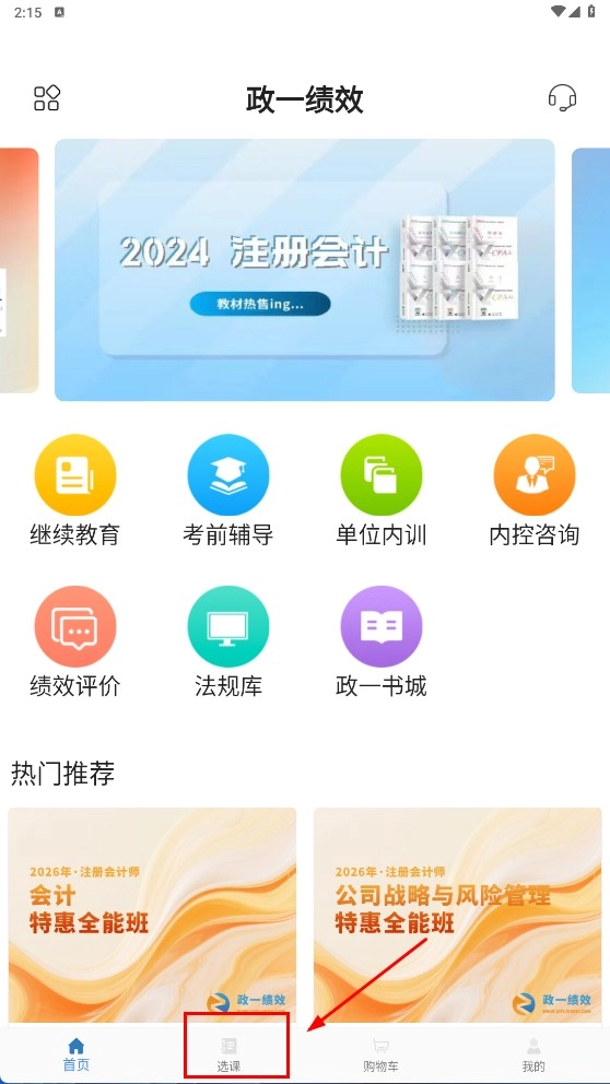 点击页面底部的【选课】按钮,即可进入课程选择界面,在此界面中您可以浏览考前辅导等各类课程分类。