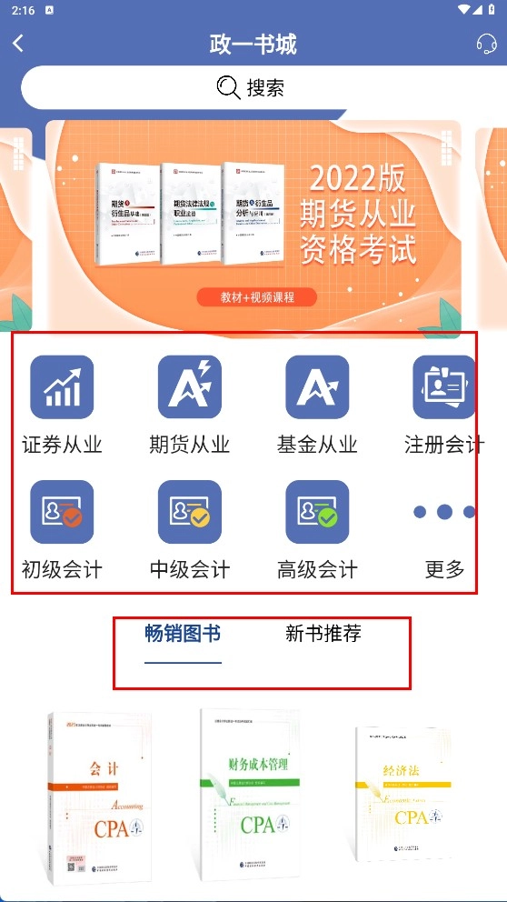 进入政一书城后,您可以通过【证券从业】【注册会计】等分类精准查找所需图书,也能浏览【畅销图书】【新书推荐】板块,挑选合适的备考教材。