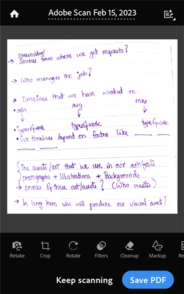 8.点击保存 PDF 后,扫描内容将自动保存到 Adobe 云存储。您可以再次打开扫描文档以进行修改。