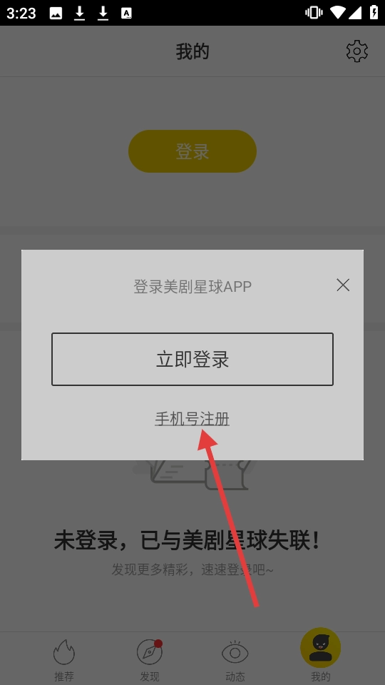 3、在登录弹窗里,点击【手机号注册】按钮就能进入注册流程。
