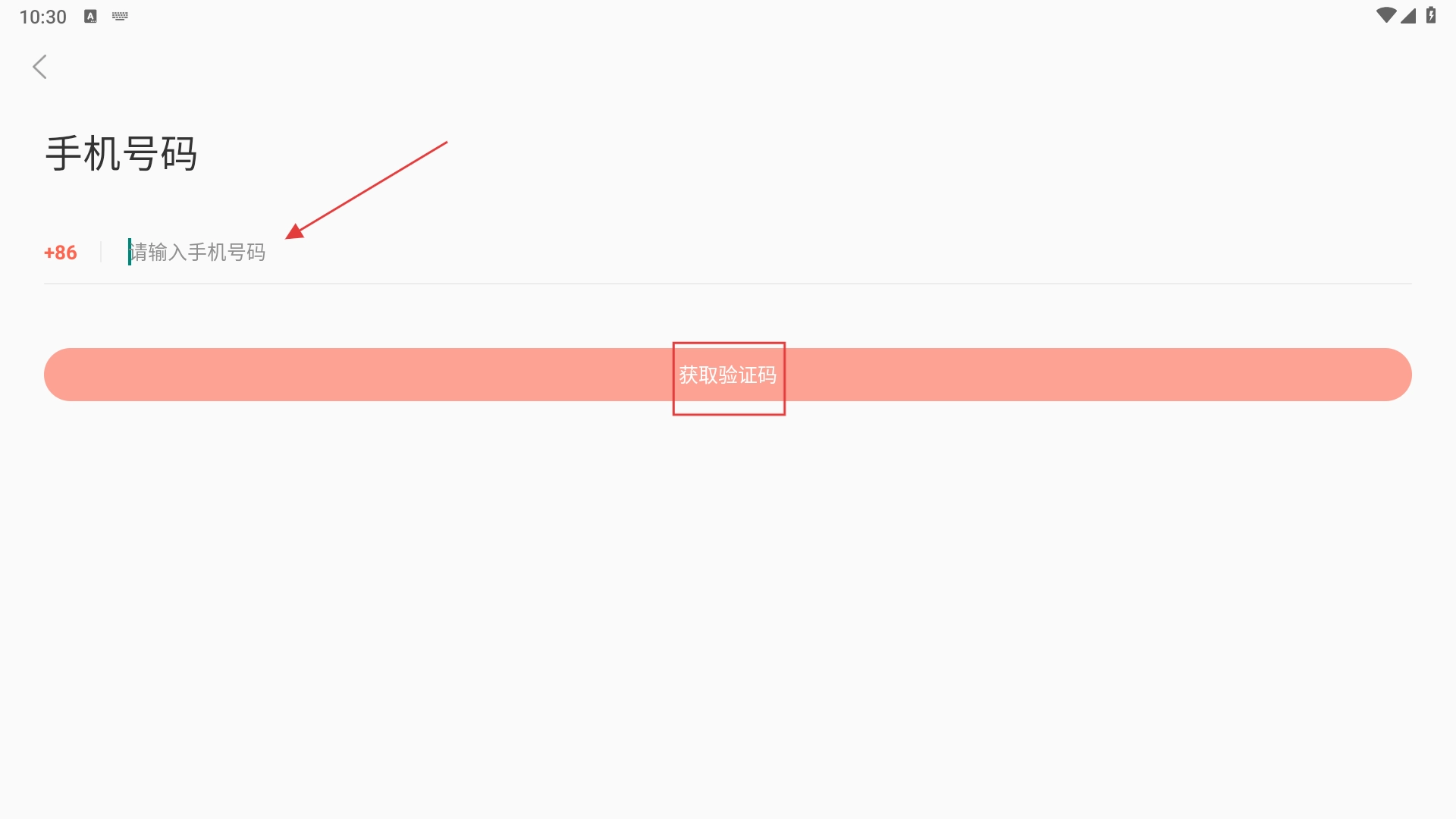 选择手机号登录后,在【请输入手机号码】输入框中填写手机号,接着点击【获取验证码】功能按钮。