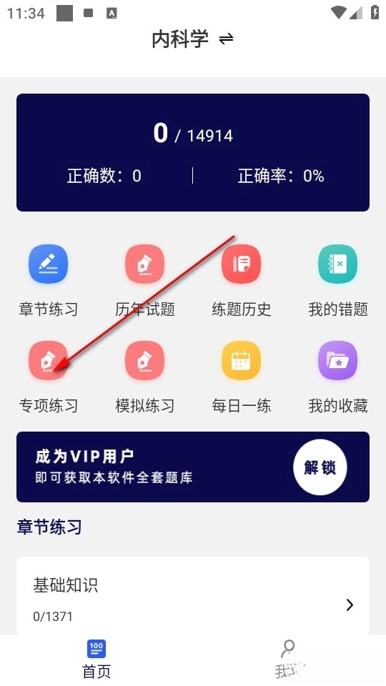 首先我们点击软件进入主页,开始练题。