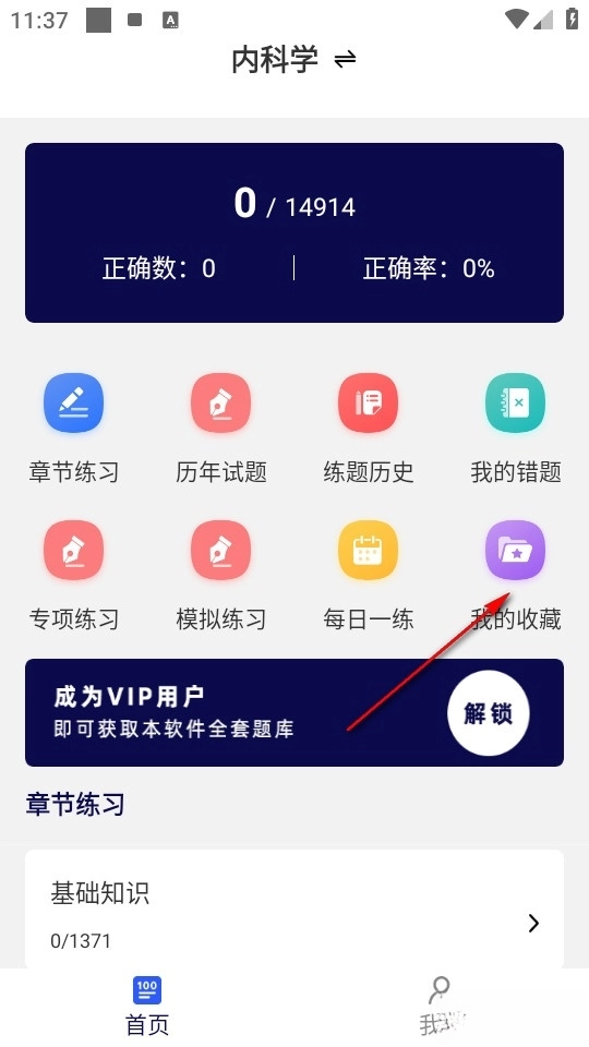 然后我们在练习结束的时候在首页找到我的收藏。