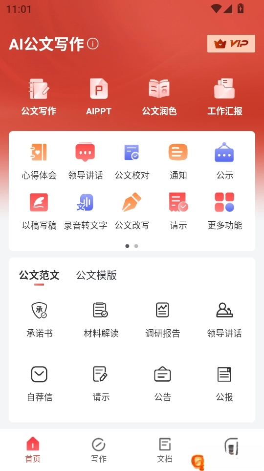 《AI公文写作》是一款专为职场人士设计的智能写作助手,基于定制化大模型技术,可一键生成工作报告、通知公告等10+类公文,支持内容改写润色与PPT智能生成,海量范文模板与资料库,助力用户高效完成专业写作任务,告别格式纠结与内容空洞。