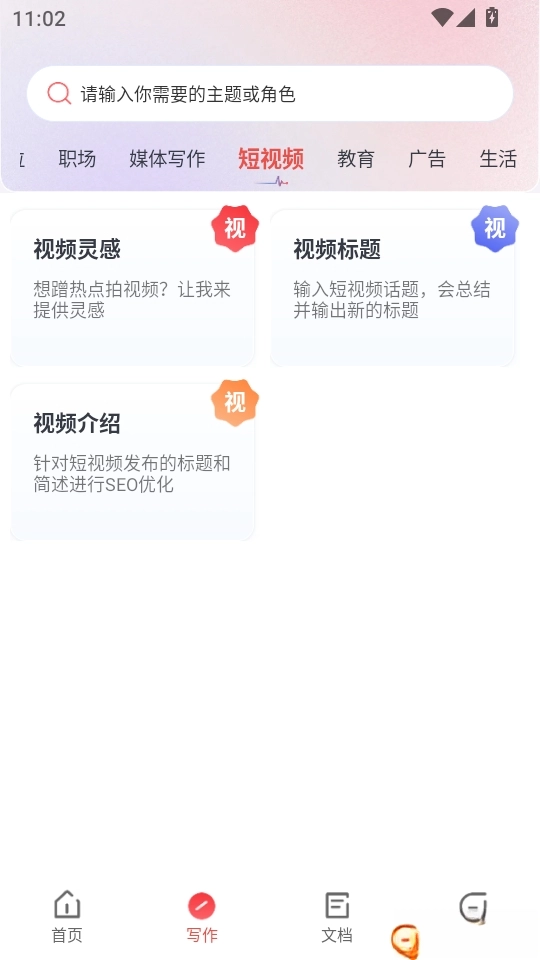 4.接下来找到“短视频”板块下的“视频灵感”功能按钮,点击进入该页面。