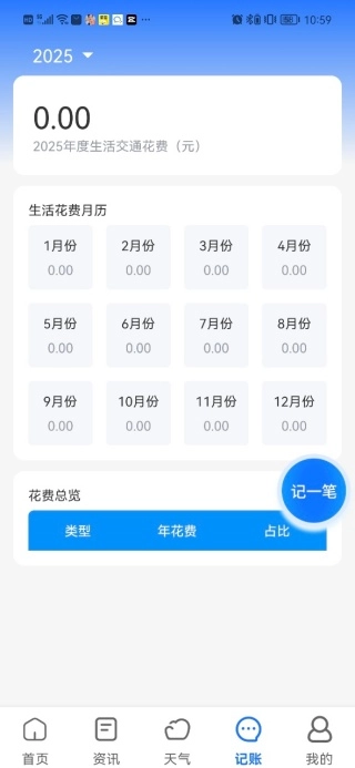 4、在记账页面中可以随时记录每天的花销,用户了解总费用更便利。