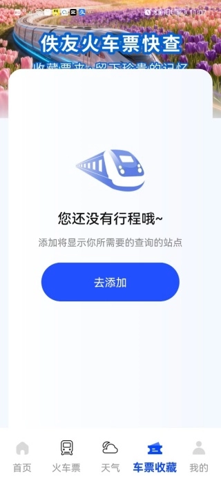 4、在车票收藏页面,你能够添加个人行程,并对各类行程开展快速管理。