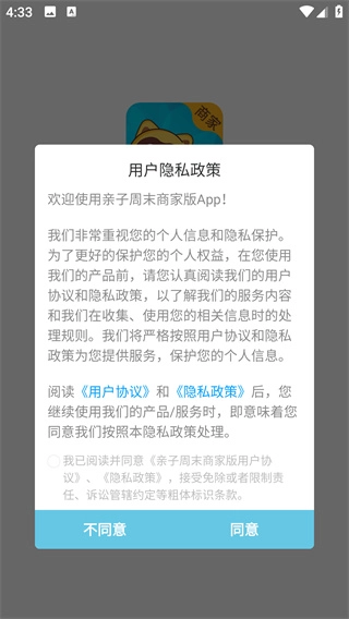 1、完成以后,阅读服务协议和隐私政策,点击同意即可进入下一步。
