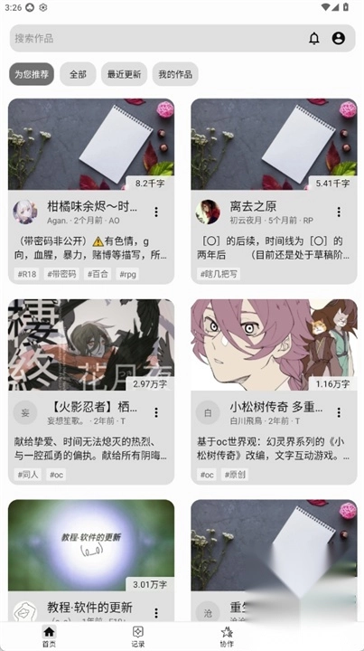 打开LiteStory软件在首页会推荐他人作品。