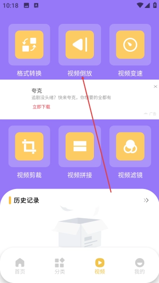 2、进入视频页面后,找到并点击【视频倒放】选项,即可进入该功能对应的选择界面。