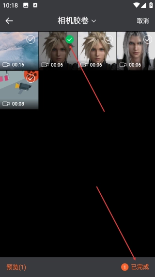 3、在相机胶卷页面,选中【目标视频】后,即可进入视频倒放的处理界面。