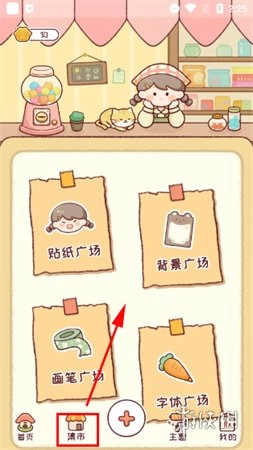 为了让手账内容更丰富,用户可进入“集市”界面,获取贴纸、背景、画笔、字体等DIY素材。