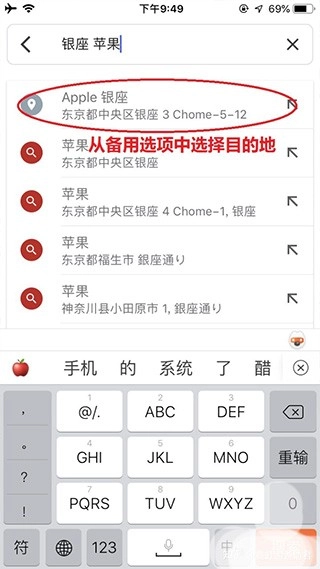 3、地图上会显示目的地坐标,打开屏幕下方的菜单就能查看目的地的详细信息