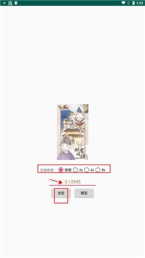 3、然后选择压缩系数,输入带有小数点的秘钥,然后点击加密;
