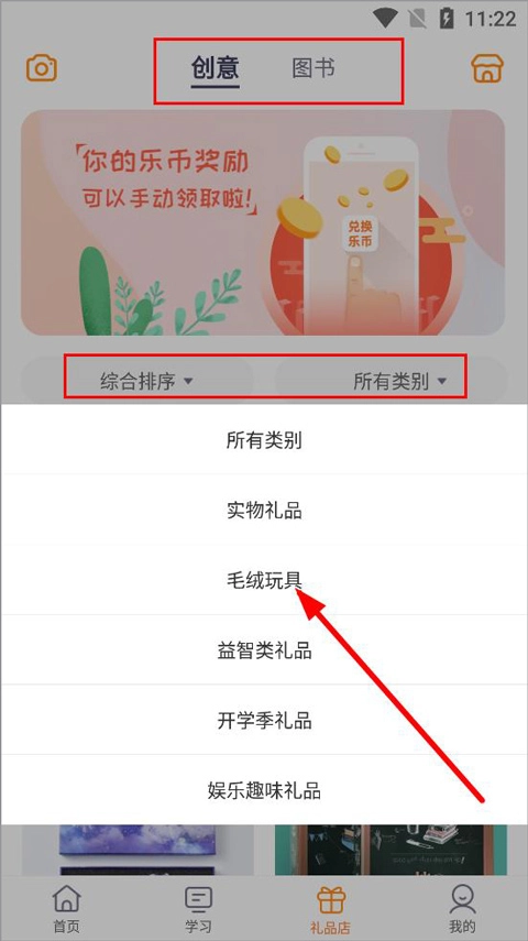 2、礼品店设有创意和图书两大栏目,支持按价格排序或按类别搜索礼品。