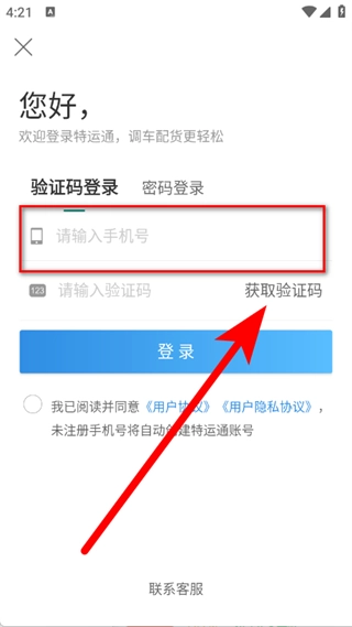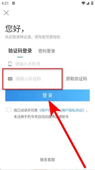 输入验证码并勾选协议后,点击登录按钮,完成登录。