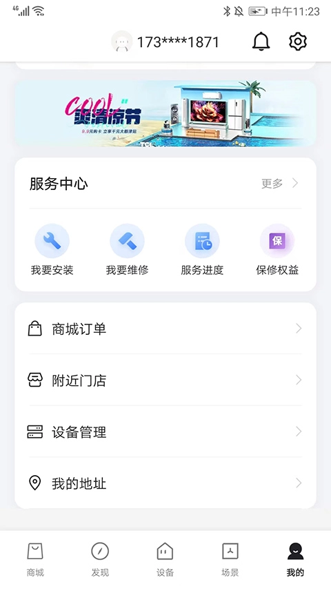 在个人中心界面,你可以查看自己的安装进度、服务进展、商城订单和附近门店,还能进行“我要维修”“设备管理”等操作。以上就是TCL智能空调的使用方法说明。