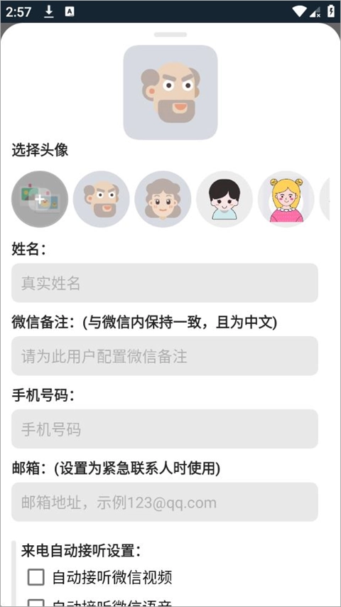 1、打开应用后,用户可以在联系人管理界面添加需要通话的微信联系人,并为每个联系人指定通话方式和自动接听设置。