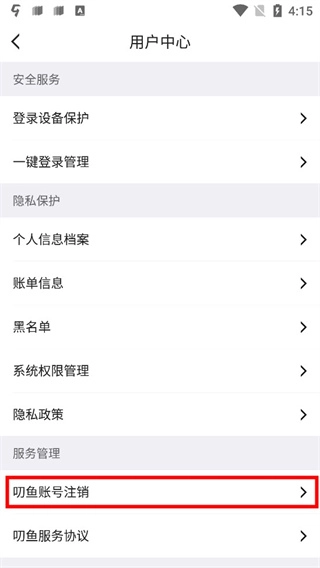 往下滑动就可以看到叨鱼账号注销了;