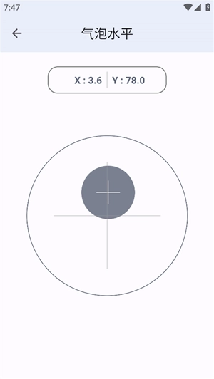 4、气泡定位功能,只需将手机放置在待测试的平面上,借助手机的陀螺仪,即可判断该平面是否处于水平状态。