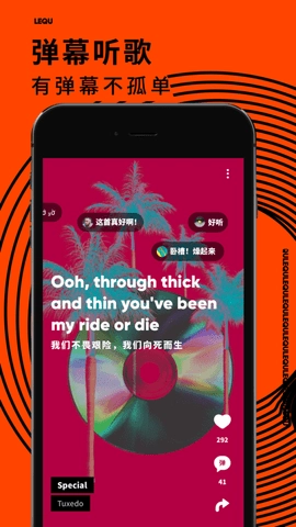 3、内容界面增加了弹幕功能,用户的评论会伴随音乐,在循环播放的动图上滚动显示,使这些评论也成为内容的组成部分。