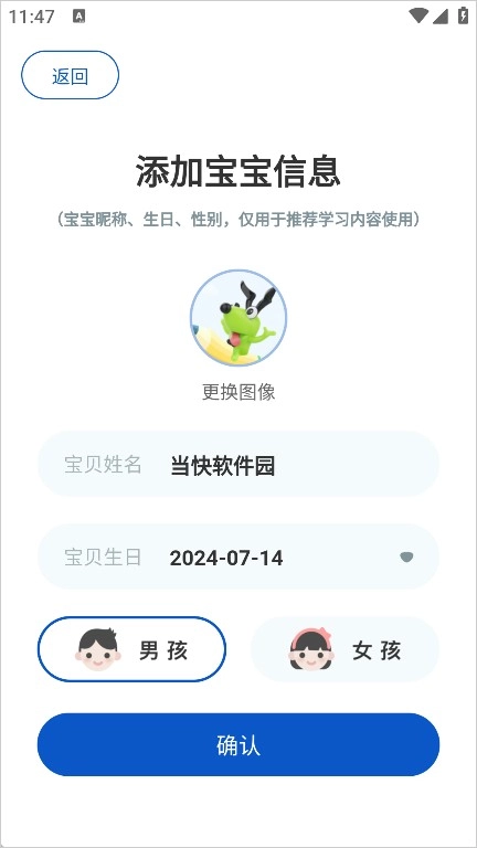 5、确认无误后,我们回到宝宝信息界面,就能看到刚才添加的宝宝信息了。