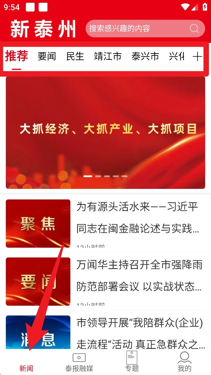 打开App后会默认进入“推荐”频道,你可以点击页面上方的栏目标签,切换到要闻、民生等不同类别,浏览各类别的最新内容。