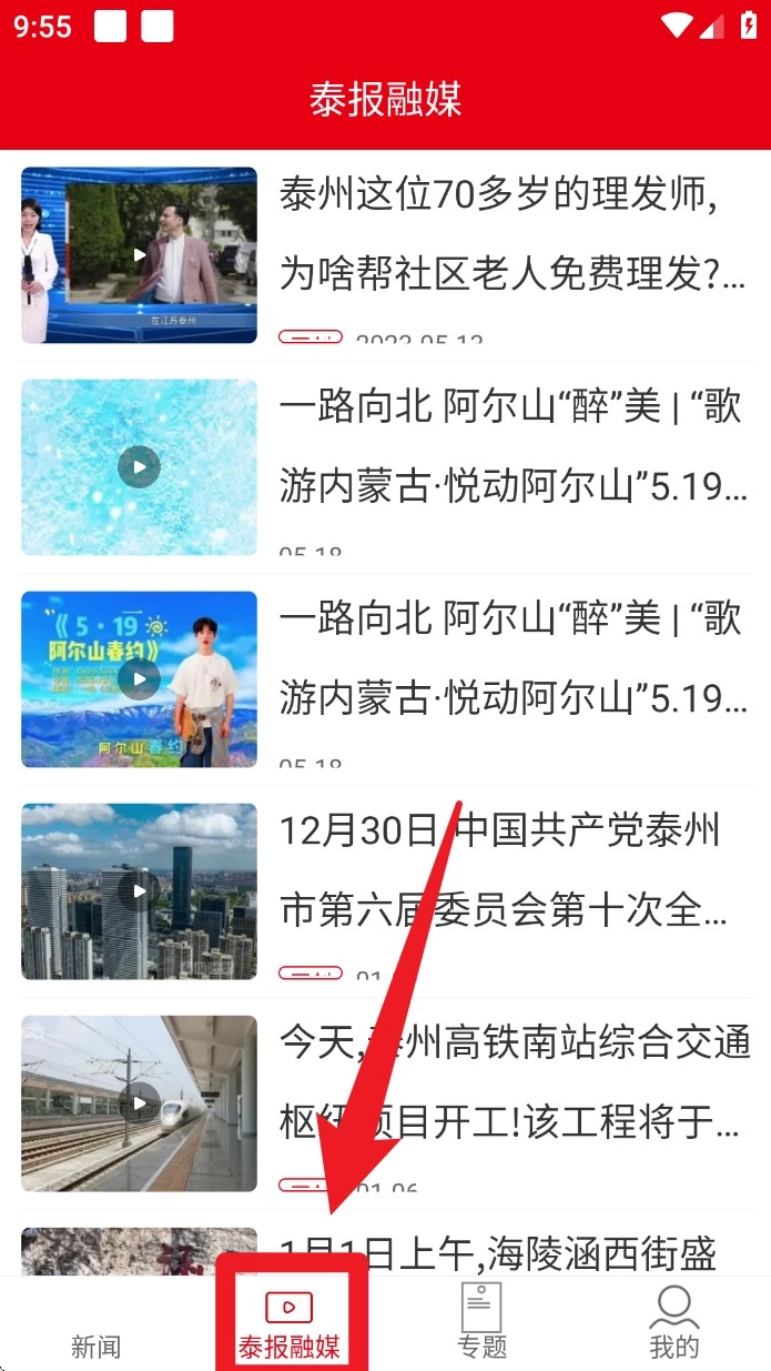 点击底部的“泰报融媒”按钮,即可进入视频新闻区,这里支持播放本地专题片、纪录片以及时政短视频。