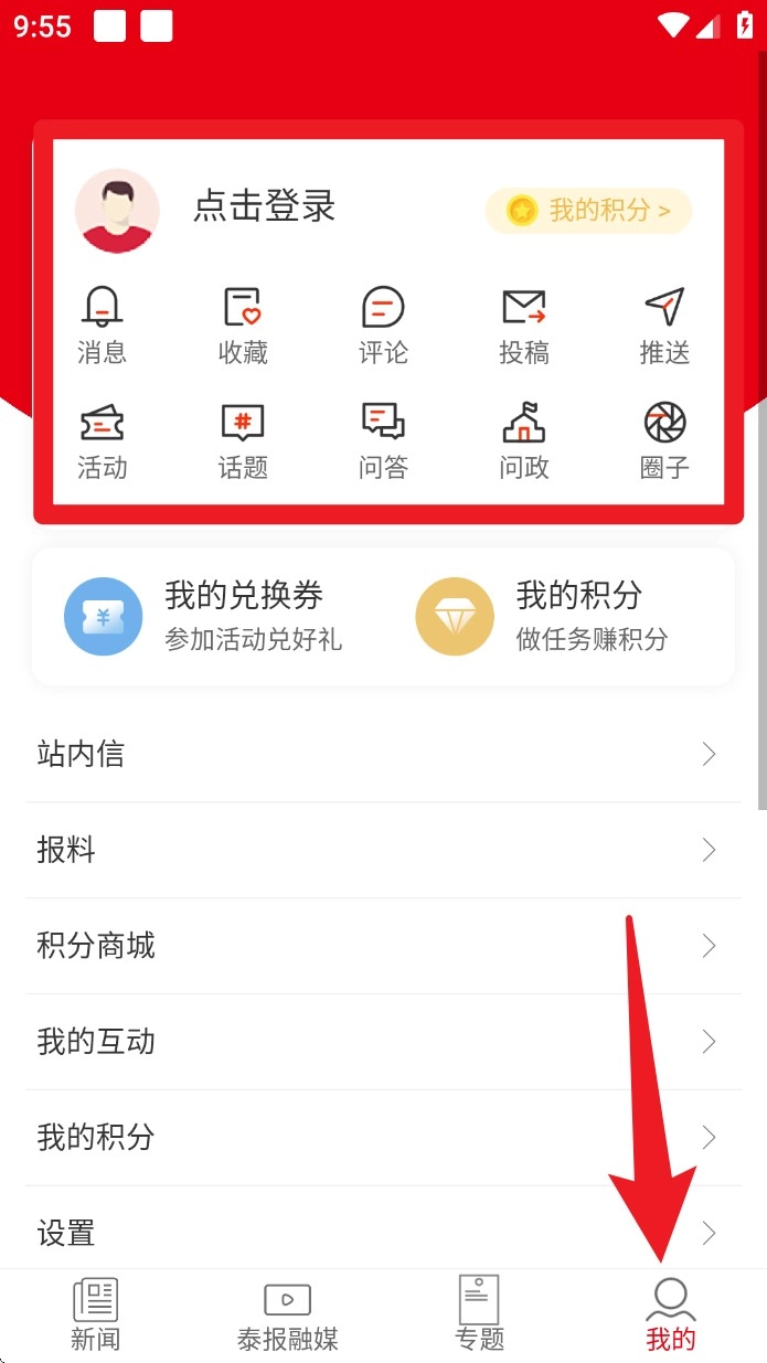 在“我的”页面登录账号后,就能看到积分、收藏、评论、任务记录以及参与活动获得的兑换券。